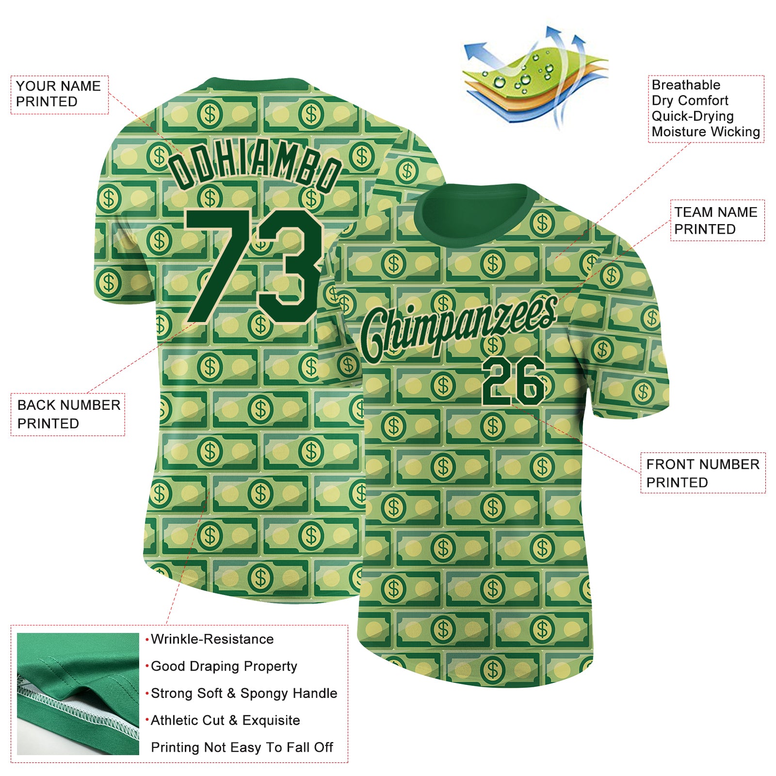 Custom Green City Cream 3D Pattern Design Dollar Banknote Money Theme Performance T-Shirt