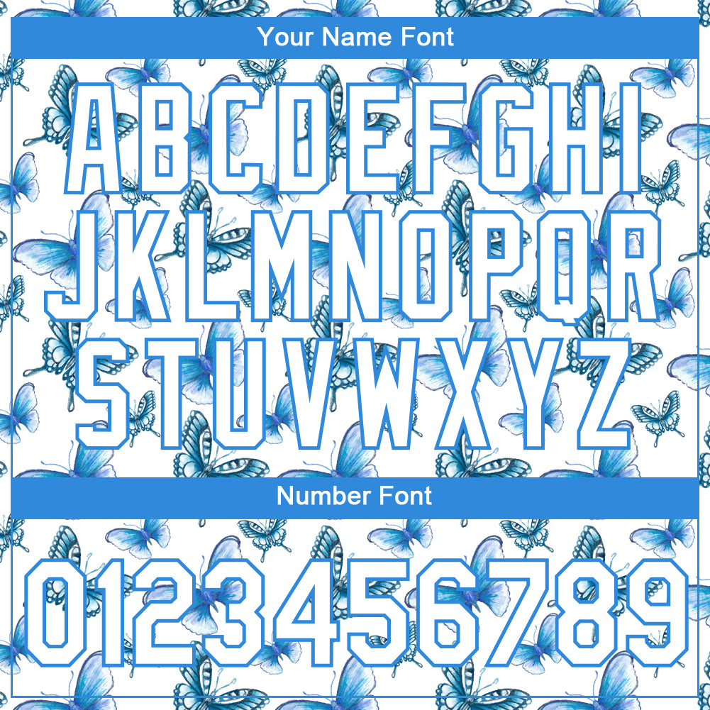 Custom White Powder Blue 3D Pattern Design Butterfly Performance T-Shirt