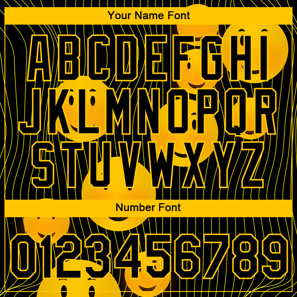 Custom Black Gold 3D Pattern Design Smile Emoji Performance T-Shirt
