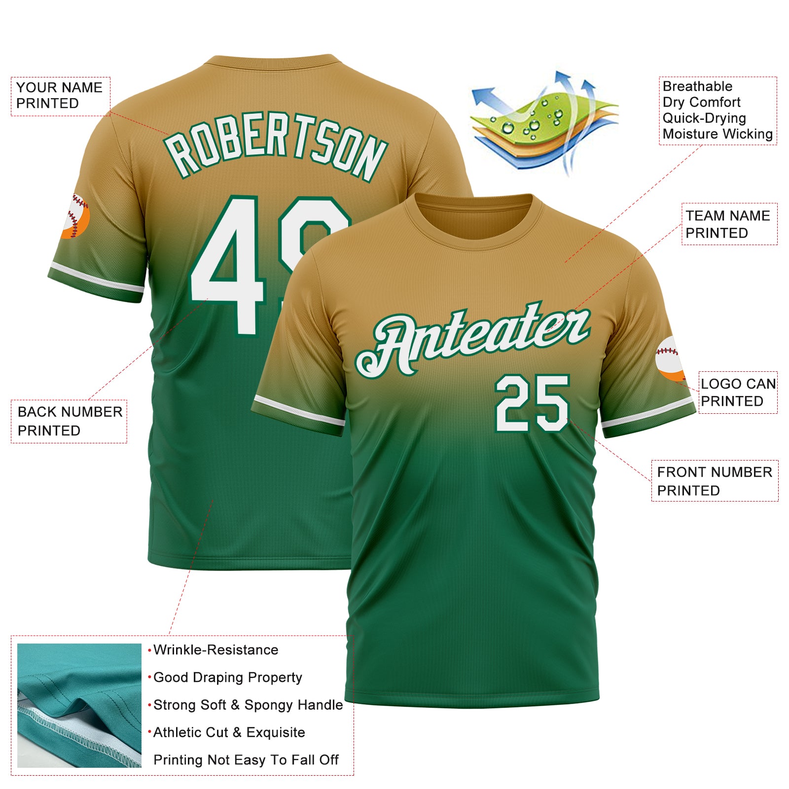 Custom Old Gold White-Kelly Green Fade Fashion Performance T-Shirt