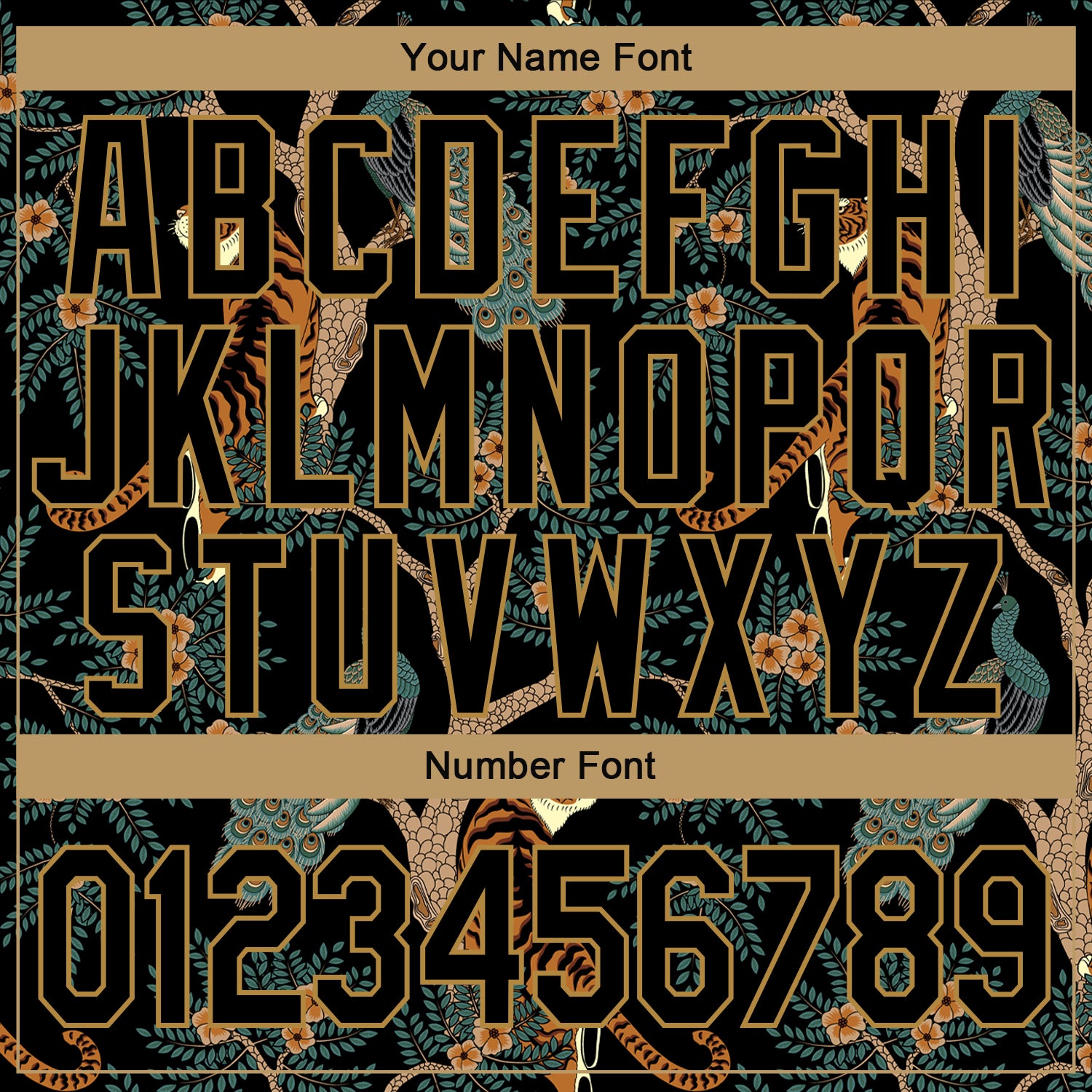 Custom Black Black-Old Gold 3D Pattern Design Tiger And Peacock Performance T-Shirt