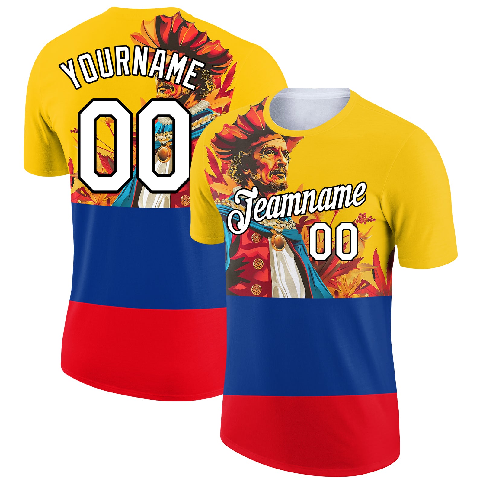 Custom Gold Royal Fire Red-Black 3D Pattern Design Sailing Columbus Day Performance T-Shirt